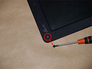 A l’aide de votre tournevis plat vous allez pourvoir retirer les caches vis en caoutchouc qui se trouvent sur le contour de l’écran. Vous devez veiller à bien les conserver car ils vous serviront lors de l’étape du remontage de votre écran de remplacement que vous pourrez acheter notamment chez Distrib-informatique.com.